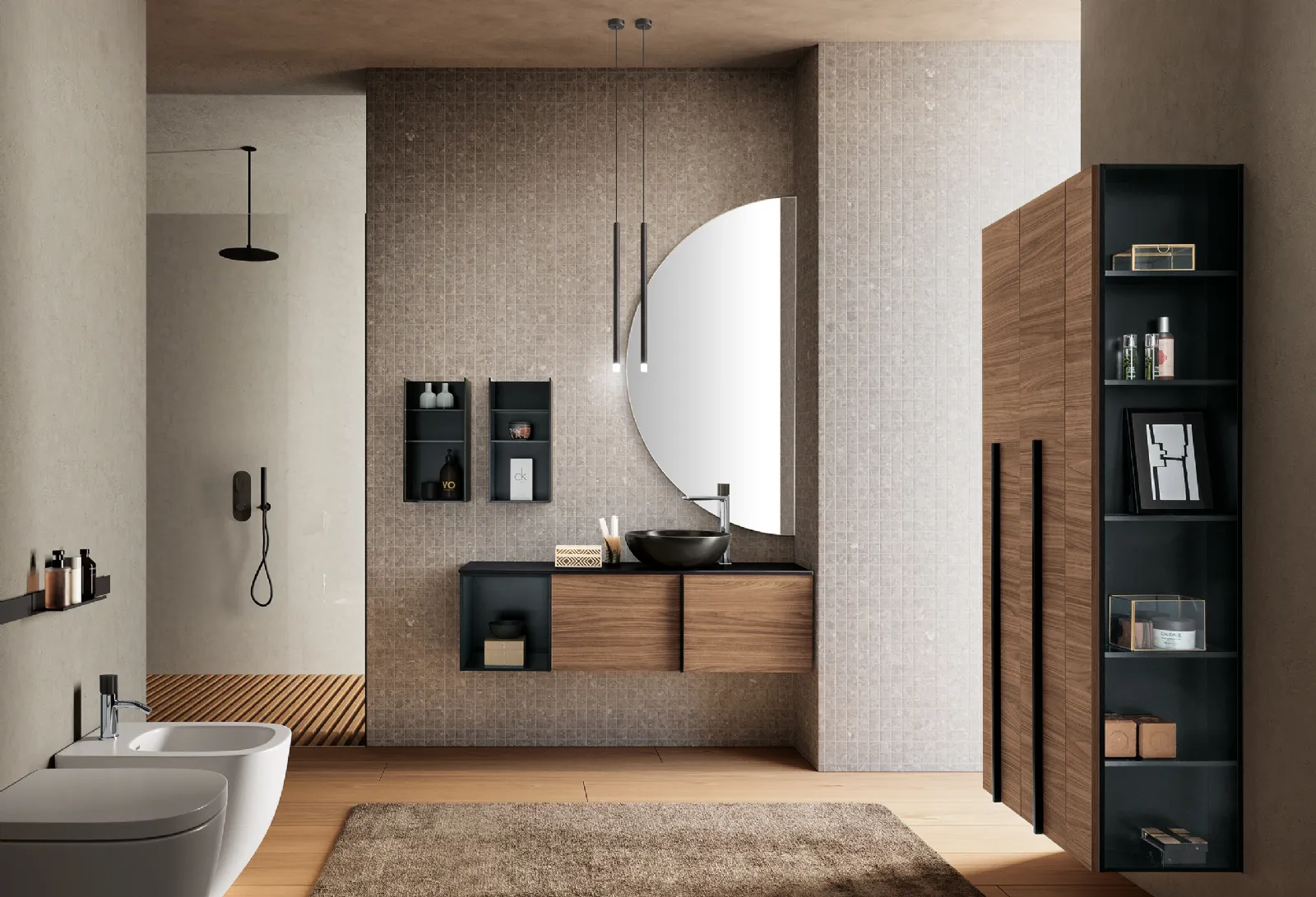 Il modello Mobile da Bagno sospeso Essenze 13 di Archeda in legno è appartenente alla completa collezione di arredi per la stanza da bagno della firma, sempre di alto valore estetico. Archeda propone progetti per l’Arredo Bagno moderno con mobili bagno sospesi che uniscono design unico e funzionalità, come tale ambiente chiede. Con le tipologie che proponiamo ti garantirai arredi fatti bene e di tendenza anche per il bagno, che va progettato con cura, con praticità e design. Gradevole e indispensabile in ogni stanza da bagno, un modello in legno moderno come quello nell'immagine risolverà le tue esigenze abitative di ogni tipo. Da noi potrai vedere dal vivo le più esclusive composizioni arredative del noto e conosciuto brand: ti accoglieremo per arredare insieme il tuo bagno. Materie prime di qualità e una ricca gamma di colori assicurano una personalizzazione dettagliata e materiali di qualità resistenti a differenti sostanze o composti.