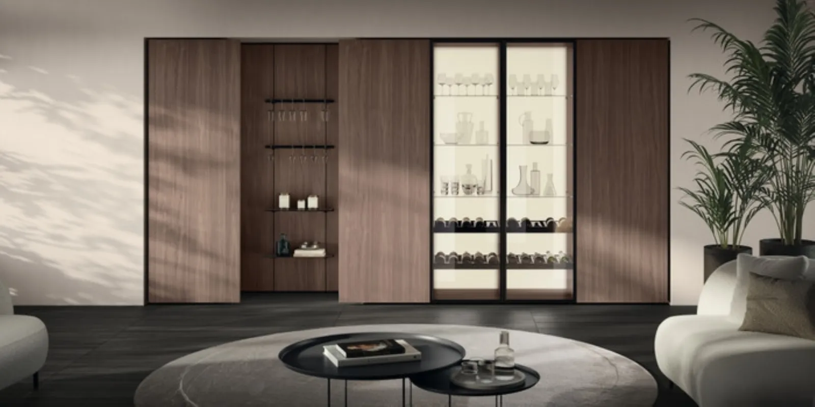 I mobili soggiorno in melaminico dalle linee moderne come il modello nell'immagine sono veramente versatili e capaci di ammobiliare il living valorizzando ogni angolo. Scavolini mette a disposizione inediti modelli di mobili soggiorno, diversi per stile e conformazioni, finiture e componenti: scopri nel nostro punto vendita l'Arredamento Casa dei migliori produttori. Visto che il living deve essere uno spazio agevole e bello da vedere, sono necessari alcuni arredi belli e pratici come le Pareti Attrezzate. La Parete Attrezzata Living Essenza 02 di Scavolini nell'immagine è una tra le più originali soluzioni d’arredo sul mercato: componibilità su misura e le diverse opportunità di progettazione la rendono bella e funzionale.